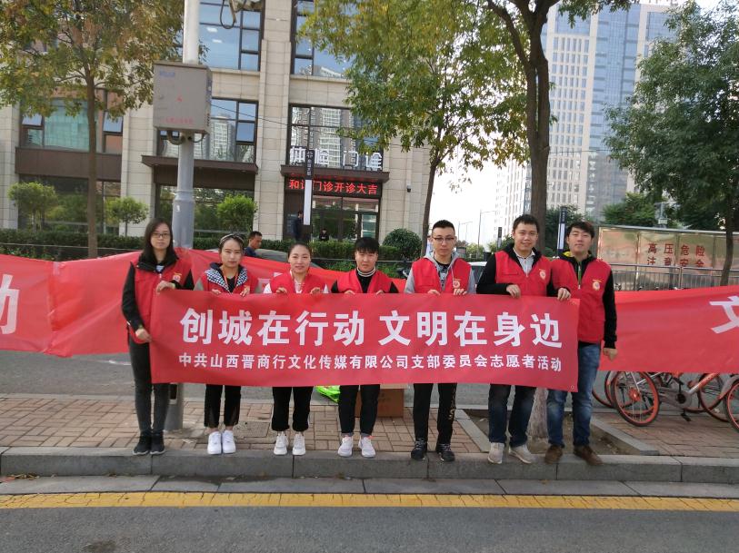 9月28日,晉商行黨支部黨員代表,在學(xué)府園區(qū)組織下,來(lái)到晉陽(yáng)街南二巷口,開展“創(chuàng)城在行動(dòng),文明在身邊”志愿者活動(dòng)。